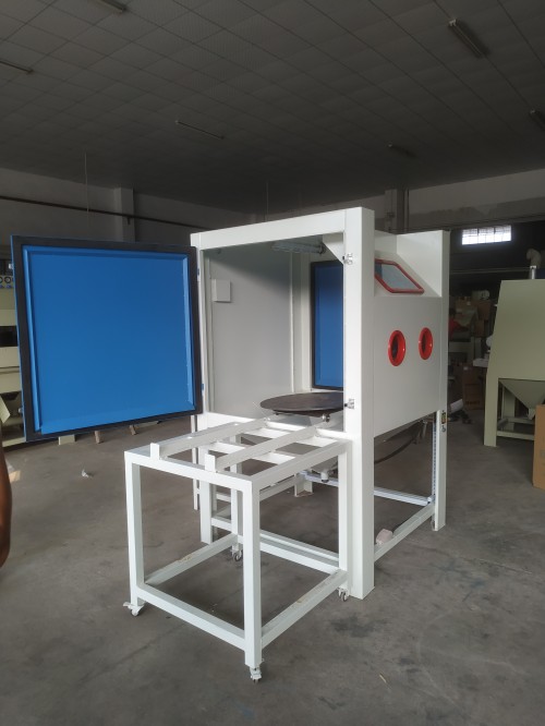 3、可依客户提供工件尺寸、重量、型状订做转盘转动360度,可加装电动调速转盘,加快加工速 度,较易控制喷砂速度。可用气缸开门,方便工件进出。
