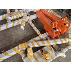 机载临时支护装里主要由翻转梁(左右)、升降油缸(左右)和顶梁、翻转油缸、支撑油缸、辅助支撑油缸、操作阀组等构成。其中只有项梁、前支撑缸在收拢状态时匍甸在掘进机切割电机背部,而上述其余部件均布置在切割部两侧。它是利用切割部的前、后销轴,把左、右翻转梁牢固的安装在掘进机上,在转梁下部安装着翻转油缸、升降油缸,缸简上安装着*对支撑油缸。操作翻转油缸和支撑油缸控制阀,使翻转梁翻转至掘进机切割头前方,操作升降油缸,推动顶梁去接触巷道顶板起到预支撑作用,将前支撑缸回转至垂直位置,人工安装辅助支撑杆后,将辅助支缸牢固的支撑在地面上,为下*步锚杆作业提供了安全空间。所有油缸都为插装式液压锁,有效保障了万*软管发生爆裂故障时的设备和人员安全。