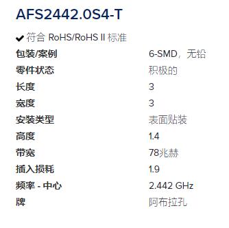 ABRACON SAW滤波器AFS2442.0S4-T系列