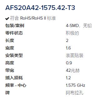 ABRACON SAW滤波器AFS20A42-1575.42-T3系列