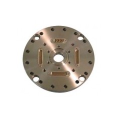 定制法兰组件,包括3针同轴亚微型d馈通,和3 ea的25针亚微型d馈通。还包括4个攻孔和 个2.75“CF法兰加工中心。