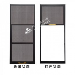重庆全景开放式三合 金刚网纱窗打开面积大的三推式三节式纱窗