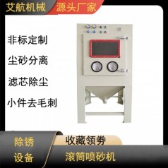 、本机为普压箱式滚筒自动喷砂机,自动操作控制方式,适合于塑胶、五金、亚克力等小产品的批量性自动生产,外形不局限于方形、圆形、椭圆、球形及部分异形件。