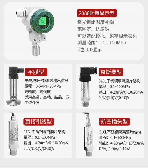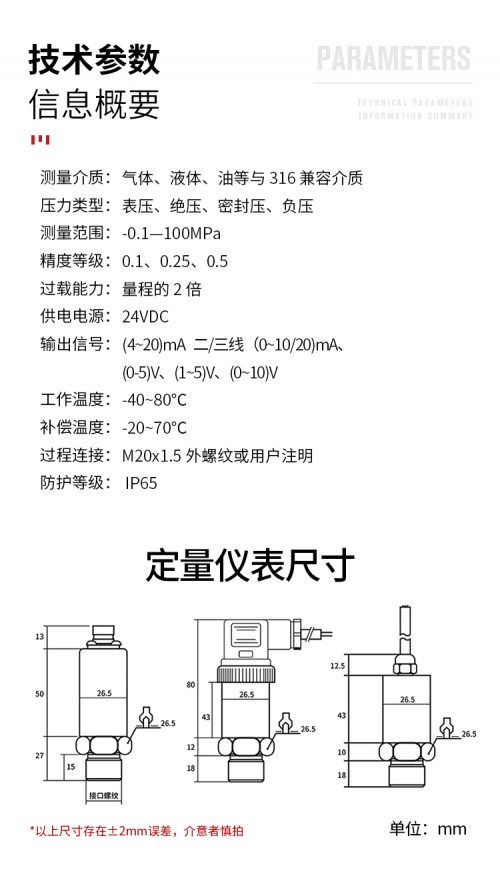 测量介质:气体、液体、油等与316兼容介质;压力类型:表压、 压、密60MPa;精度等 :0.1、0.25、0.5;