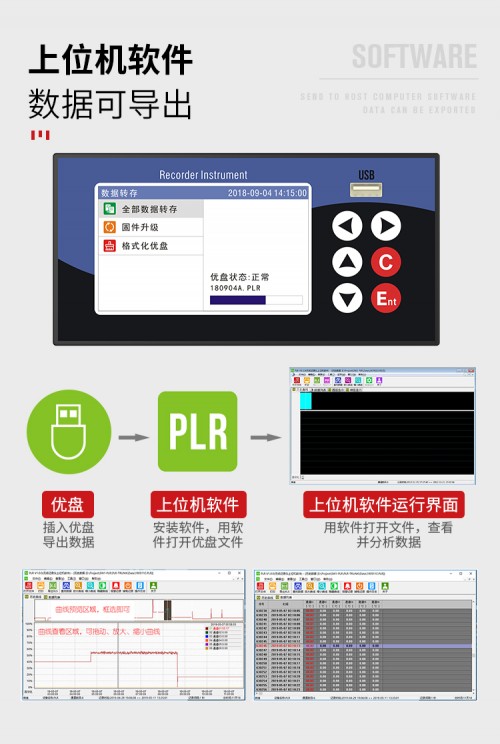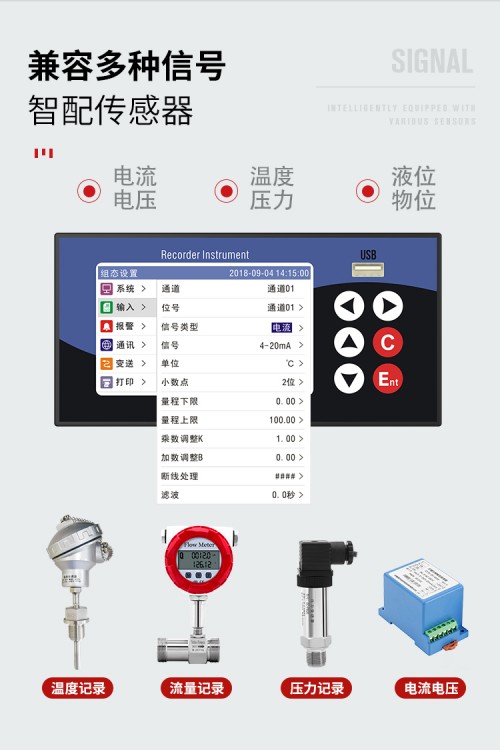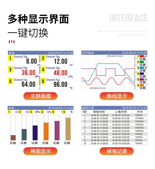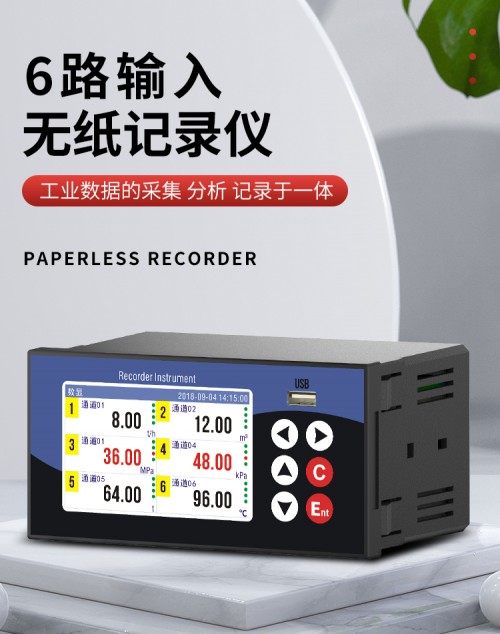 GT68R无纸记录仪多路工业 压力电流电压曲线温度是将工业现场的需要监视记录的输入信号通过高性能微处理器进行数据处理并转换为可识别和读取信号的仪器, 方面在高分辨率液晶显示屏上以多种形式的画面显示出来,另 方面把监察信号数据存放在仪表内部的大容量存储芯片中并可在仪表上直接进行数据和图形查询、翻阅和打印。