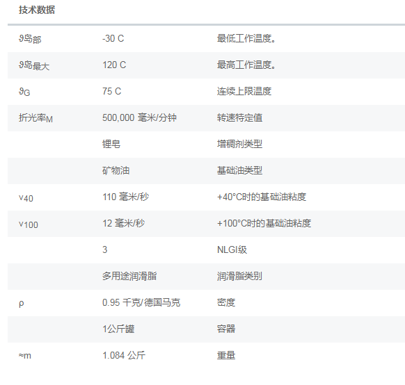 MULTI3(L71V):矿物油,工作温度 -30度— +120度,连续工作*限温度75,增稠剂类型:锂皂,粘稠度(NLGI 等*)3,用于球轴承,直径大于62MM,应用于大型电动机,农用和建筑机械,风机。相关搜索《《润滑脂发货实录,安徽捷越FAG ARCANOL润滑脂发货实录,润滑脂TEMP90发货实录