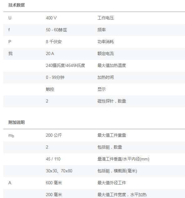 MART车型配备了Delta-T控制装置,这是推荐用于低径向间隙滚动轴承的装置。内环和外环的两个温度传感器可以分别控制。SMART系列设备可以精确记录加热过程,这在维护工作和维修必须随时详细跟踪的情况下很有意义,例如在特别安全的应用中。为了能够在时间方面优化加热阶段,SMART车型还具有斜坡功能(单位时间的温度),该功能会影响加热曲线。FAGHEATER200-SMART-400V加热*小内径45mm,*大工作外径600mm,*大工作宽度210mm.加热重量可达200KG。