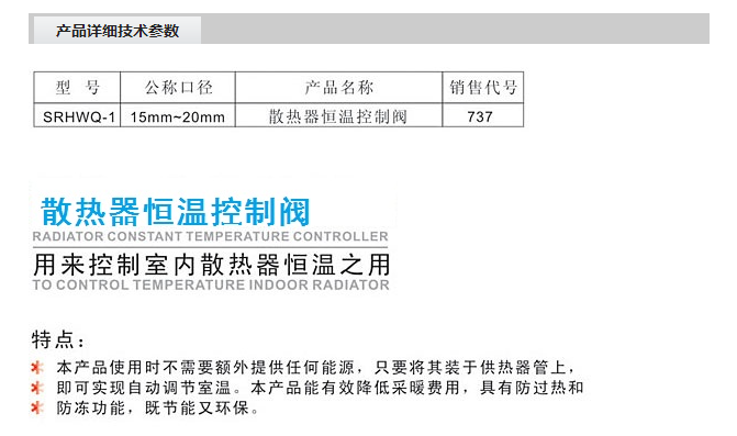 AMICO 散热器恒温控制阀SRHWQ-1系列