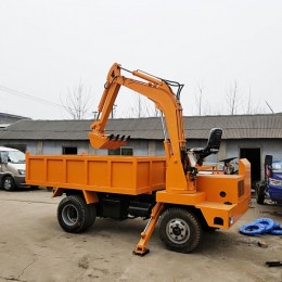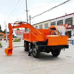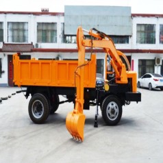 四不像随车挖掘机主要是原车改造翻斗车上使用,挖掘壁安装在车架上,可直接开走挖土装车。四不像随车挖掘机 般由工作装置、上部车体和下部车体三大部分组成,其可以配装多种工作装置,如挖掘、起重、装载、平整、夹钳、推土、冲击锤,旋挖钻等多种作业机具。广泛应用于水利工程和四不像车开采,也可用于沙场土方施工作业。