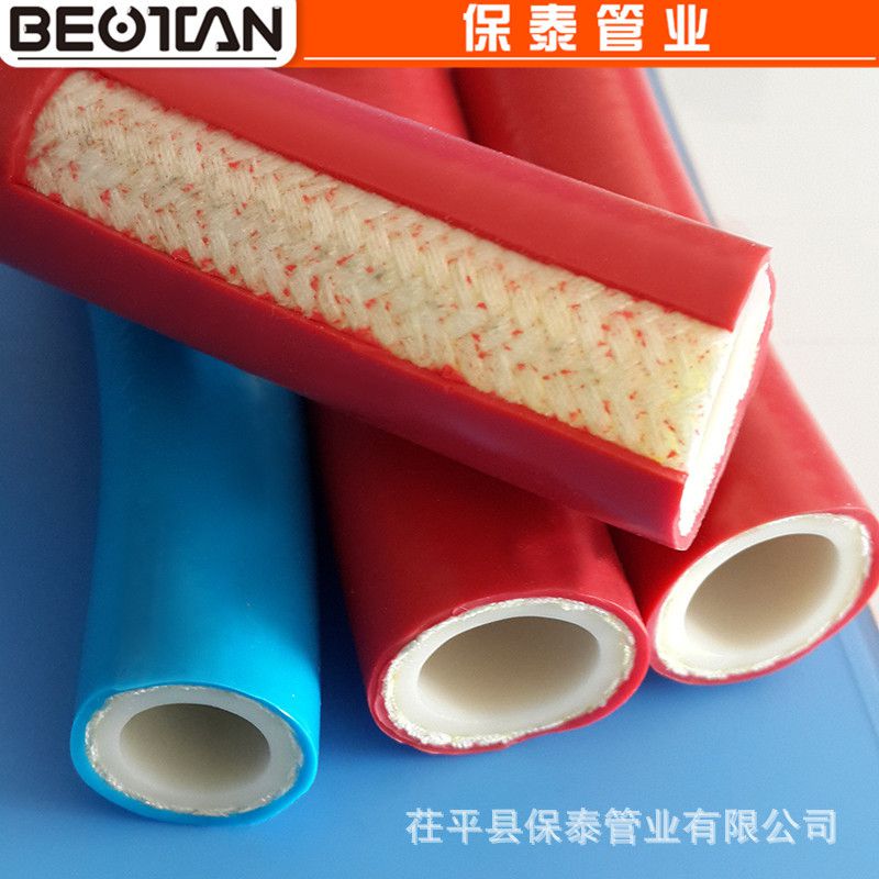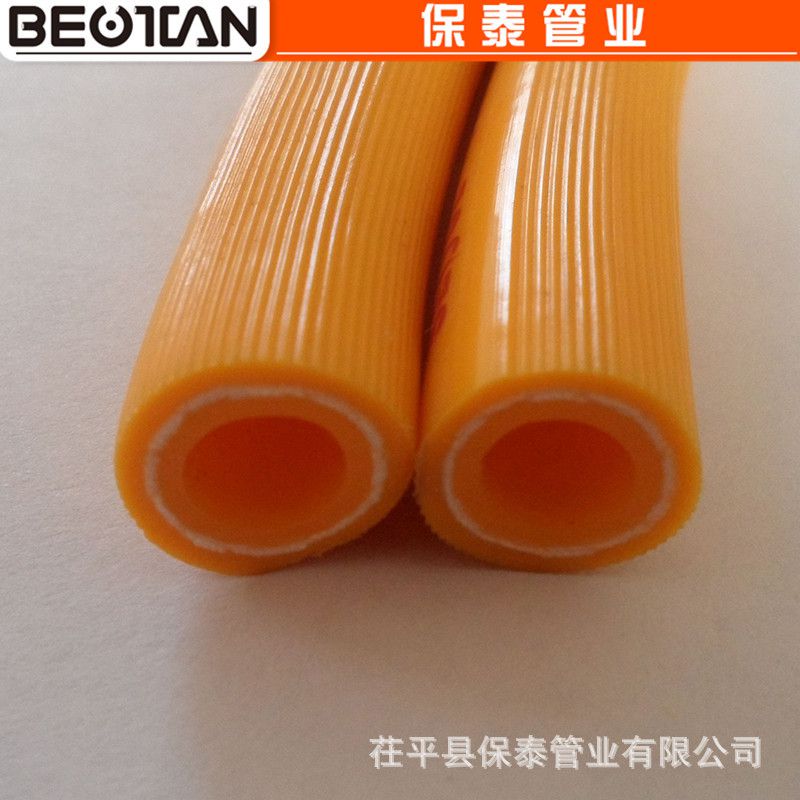 管壁内外层是由特制软PVC制成,中间增强层为涤纶线精密编织而成,PVC层与涤纶层是经过特殊技术粘贴,管体具有无毒,柔软,光亮,精巧,耐腐蚀,耐高压,耐酸碱,耐老化,耐阻燃,耐寒性,抗拉伸和外型美观,色彩艳丽,柔软轻便,经久耐用且富有弹性的特性。