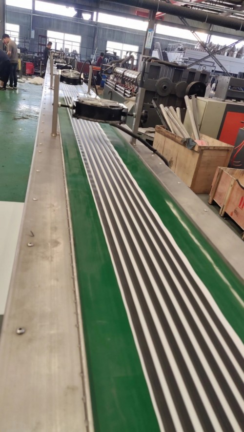 ,条挤出后,会送达到覆膜管进行覆膜,再经过夹层管向前牵引
