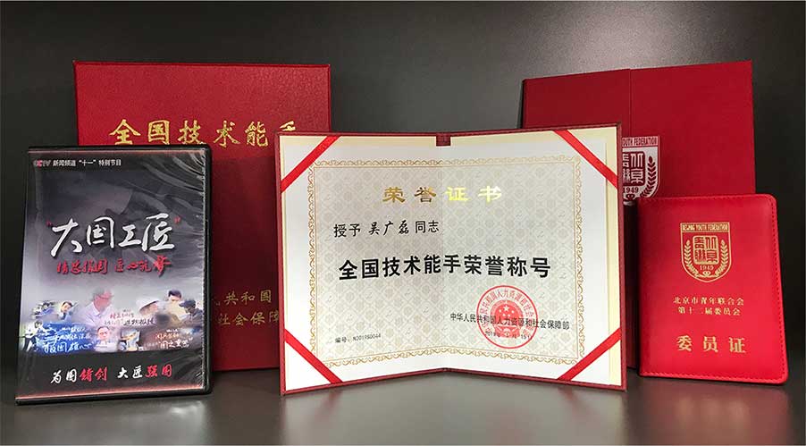 在江苏百正数控装备有限公司车间内, 吴广磊正在查看生产情况, 吴广磊今年39岁, 2004年大学毕业后, *后在深圳、上海、北京等国企、外企从事数控加工、数控编程、工艺、数控机床维修等工作, *后斩获中华技能大赛全国职工职业技能大赛个人**名, 全国技术能手、全国五*劳动奖章、大国工匠等荣誉称号。2020年初, 吴广磊萌生了自己创业的想法。