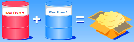 iDeal Foam?-工作原理: 原料A和B以 定的温度和比例在特定压力条件下进行混合发泡成型
