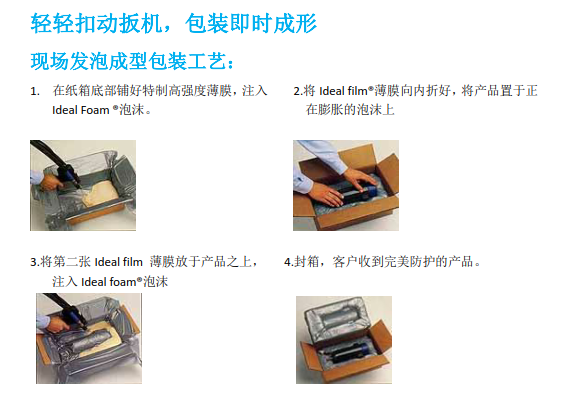 iDeal Foam ? 发泡包装是个工艺流程,不仅仅是个产品。我们 不仅仅是材料提供商,我们提供的是整体解决方案。