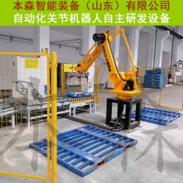 腻子粉多关节码垛机械手应用:腻子粉多关节码垛机械手广泛应用于化工、建材等工业*域,特别适用于腻子粉、水泥、化肥等袋装产品的码垛作业。该设备还可以与其他生产线设备配合使用,实现自动化生产线的无缝对接。