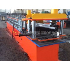 开卷机→入料装置→校平装置→成型主机→液压泵站系统→PLC电气控制系统→冲孔装置→剪切系统→成品托架
