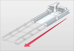 所有結構件皆透過 FEM 有限元素分析,具有設計化,結構輕量化等優點,確保整機結構剛性橫樑、側柱皆採高剛性結構設計,且橫樑與滑座接觸面經過精密手工鏟花程序,確保組裝精度、結構強度及均衡負載Z 軸採用重負荷滾柱型線性滑軌,兼具硬軌的重切削剛性與線性滑軌的快速移動、低磨耗等特色,剛性與控制性大幅提升X 軸行程 4 m / 5 m 之機型