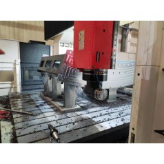 高剛性結構 體式底座採用複合四滑軌設計,底座尺寸依行程長度比例加大,消除工作台懸垂問題,確保支撐剛性大跨距對稱式中心驅動設計,X 軸滾珠導螺桿在運動軸向中心,提供高精度與重負荷之軸向進給能力,避免因偏置驅動所產生之移動件游離與導軌磨耗不均勻等現象發生配置螺桿減震機構,降低長尺寸螺桿懸垂迴轉之震動