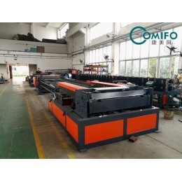 此风管生产线是我司销量 大的设备之 ,直线型加工,占地面积小,生产效率高,只需 名操作人员,直接输入尺寸,生产线自动完成,日加工能力可达2000平方米,适合风管规模化加工。