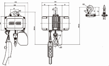 7. 可调节高度限制器使吊钩到达设定高度时自动切换速度。