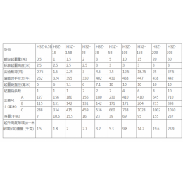 起升高度每增加 米所增加的重量 (千克) | 1.5 | 1.8 | 2 | 2.7 | 3.2 | 5.3 | 9.8 | 14.2 | 19.6 | 23.9 |