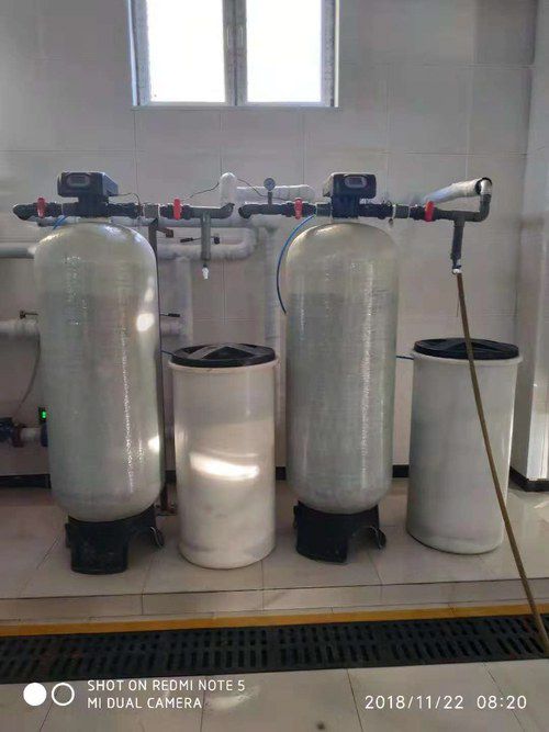 水的硬度主要由其中的阳离子:钙(Ca2+)、镁(Mg2+)离子构成。 当含有硬度的原水通过交换器的树脂层时,水中的钙、镁离子被树脂吸附,同时释放出钠离子,这样交换器内流出的水就是去掉了硬度离子的软化水,当树脂吸附钙、镁离子达到 定的饱和度后,出水的硬度增大,此时软水器会按照预定的程序自动进行失效树脂的再生工作,利用较高浓度的溶液(盐水)通过树脂,使失效的树脂重新恢复至钠型树脂。