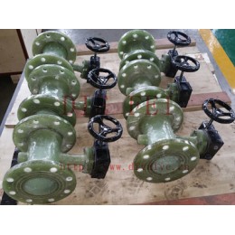 玻璃钢蝶阀把主要易腐蚀部件如阀体、阀板等设计为玻璃钢材料,玻璃钢部件所使用的纤维、纤维织物与树脂类型由蝶阀的工作条件确定。玻璃钢阀体的主体形状为直管状,它的结构特点是以 段玻璃钢直管为基础,然后再增加法兰、密封环制造而成。该种蝶阀具有耐腐蚀能力强、成本低廉、制造工艺简单灵活等特点。质轻而硬、不导电、机械强度高、耐腐蚀、安装方便、耐温高。可添加防静电材料,达到防静电作用。玻璃钢蝶阀可用于输送腐蚀性气体的管道中,具有不腐蚀,寿命长的特点,可做成各种颜色。