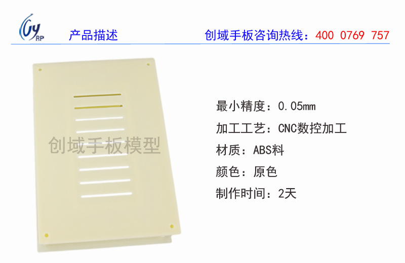 手板 完美验证了你产品外观,结构设计,体现优缺点,及时改良修正,从而缩短开发周期,提高你的“战斗力”。其次手板还做为见客样板以及参展样品,有了实物说明为你赢得客户的心功不可抹(事实胜于雄辩),还可以做为市场调查,为你定位做标准。电路板外壳手板材质:ABS料,加工工艺:由CNC数控加工而成,制作出来的样板表面花纹清晰,再经过手板师傅精心制作,耐心喷灰、打磨、装配,是您完美创作的 佳体现。
