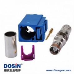 - RF连接器,Fakra连接器,母,弯式,50欧姆,焊接,压接,接线,RG174,RG316,黄铜,镀镍;