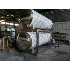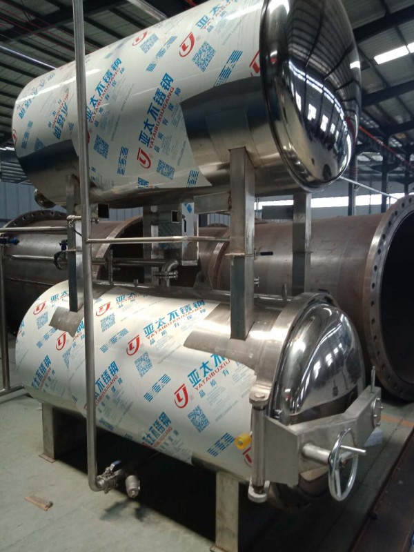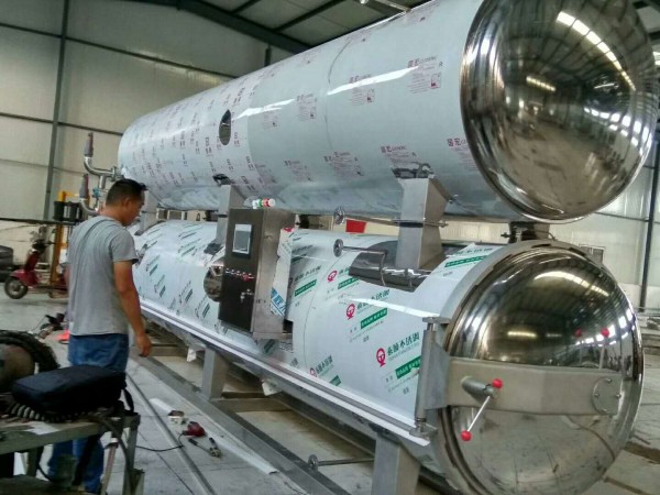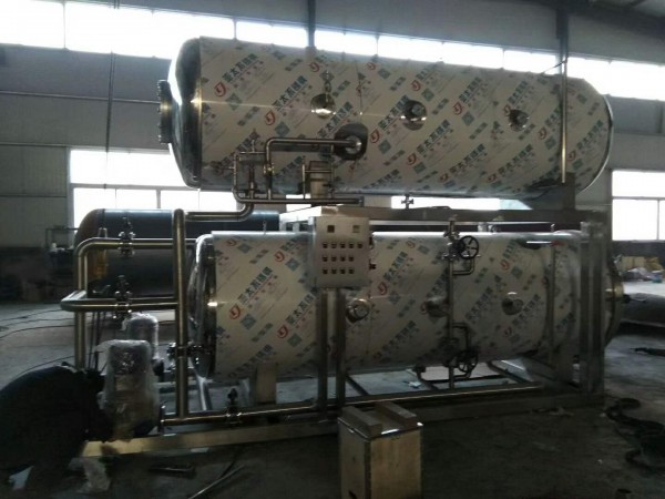 用 简单的术语,杀菌锅是 只密闭的、加压的加热器,用于加热密封在容器内的食品。对密封包装在容器内需商业无菌杀菌的食品,可以使用多种不同的杀菌锅系统。杀菌锅系统有着 些相同的特性:系统是加压的,传递温度大大高于沸水。杀菌锅由锅体、锅盖、开启装置、锁紧楔块、安全联锁装置、轨道、灭菌筐、蒸汽喷管及若干管口等组成。锅盖密封采用充气式硅橡胶耐温密封圈,密封可靠,使用寿命长。具有受热面积大,热效率高、加热均匀、液料沸腾时间短、加热温度容易控制等特点。