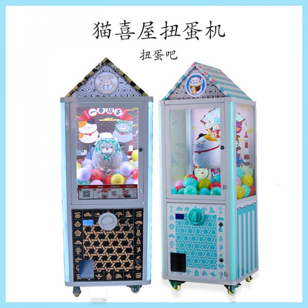 扭蛋机指的额是售卖扭蛋的机器,可以根据机器前的宣传卡清楚的知道里面售卖的是何种款式的玩具,只要你投入售卖的金额或者是扫码支付,按动机器前的按钮,机器下方就会跌出扭蛋。