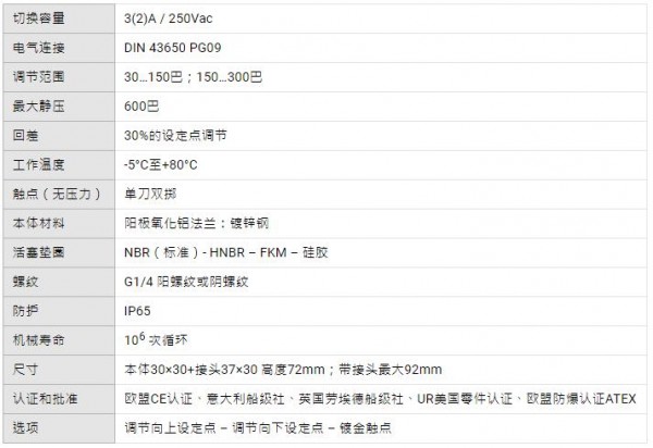 ELETTROTEC 带单刀双掷触点的可调节压力控制器PPC / PPCF系列