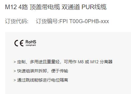 FAS ELECTRONICS M12分线盒4路顶盖带电缆系列