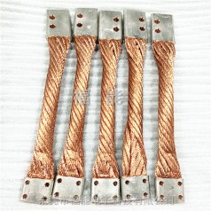 铜绞线软连接是多股编制的软铜绞线合成 股,在按要求裁成小段,压上铜管鼻子,或者不用铜鼻子,通过高分子扩散焊熔压,专用磨具成型;可根据客户要求敷 层透明的 缘PVC套管或者热缩管保护。