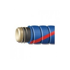 软管构造: 内胶层: T 型FEP(氟化乙丙烯)或者PTFE((聚四氟乙烯). 白色,衬以Gatron™ 改性交联聚乙烯。 增强层: 合成高强度织物,单丝纤维螺旋以及静电钢丝。外胶层: P 型 (三元乙丙橡胶).蓝色瓦楞带红色螺旋色带。