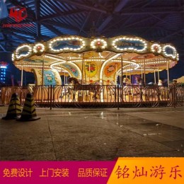 主体采用钢材制作,马匹采用玻璃钢材料制作,具有环保、安全、耐腐蚀、稳定性好等特点,可根据场地条件定做。转马规格:12座、24座、36座、68座、88座;根据装饰程度可分为简易转马、中豪华转马和豪华转马。根据传动方式可分为下传动转马和上传动转马。