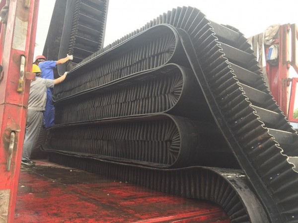 我公司生产的大倾角输送带,挡边、横隔板与基带的粘接采用二次硫化,低温热硫化粘接,粘接强度高,粘接牢固、平整,不掉板、不脱落,不会因物料温度过高导致裙边与隔板脱落现象。