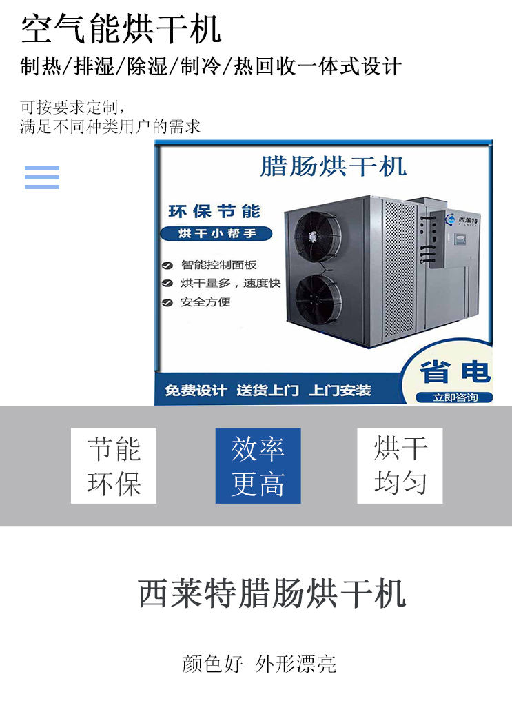 1、节能高效:空气源热泵烘干机的运行费用只有燃油干燥机的40%,燃煤干燥机的60%和电热加热设备的30%,大大节省了烘干的成本为企业创造了直接的利润。