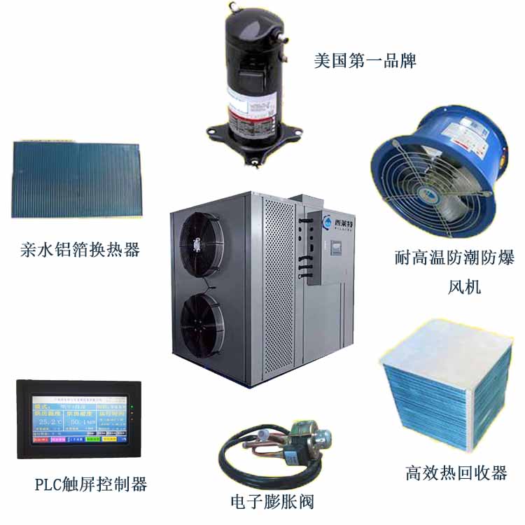 2、安全环保:烘干除湿热泵机组具有安全性(电气分离技术),零污染排放,对烘干物料本身无污染,对环境也没有污染。