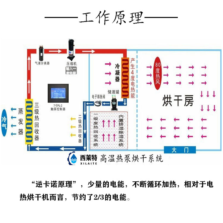 1、节能高效:空气源热泵烘干机的运行费用只有燃油干燥机的40%,燃煤干燥机的60%和电热加热设备的30%,大大节省了烘干的成本为企业创造了直接的利润。