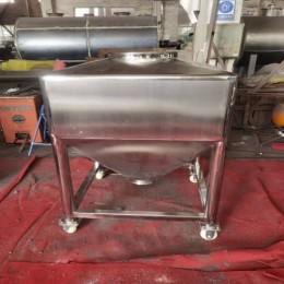 方锥混合机 1、工作原理该机由机座,驱动系统,控制系统,混合锥斗等部件组成。工作时将物料装入方锥型密闭混合桶内并锁紧桶盖。料斗与机座回转中心线成30夹角物料便于形成多 维运动。使物料达到好的混合效果。按设定的转速和时间运行停止后,即可进行分料。2、设备特点该机是我公司广泛吸收消化成熟技术,结合国内用户需求而研发成功的新机型。整机设计新颖,结构合理,外形大方美观,操作简便。混合均匀度完全 达到总混要求,装料系数可达80
