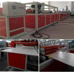 PVC墙板生产线主要由锥型双螺杆挤出机、真空定型台、牵引机、切割机、接料架组成。生产线采用智能控制,自动化程度高、设备稳定、操作简便、生产效率高。通过更换不同规格的模具可以生产多种规格、尺寸、形状、厚度的木塑装饰墙板。“PVC墙板”又称“集成墙面”是由竹木纤维做为材,树脂材料作为表面工艺做出的 种广泛用在家庭、工程等墙面装饰的材料,花色媲美传统壁纸,同时又兼有护墙板的优点,作为 种新型的替代墙漆、壁纸的墙面装饰材料。