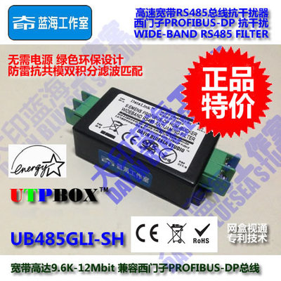 UB485GLI-SH为大印蓝海PRO-DY-DP TM系列西门子DP总线隔离滤波器,DP总线抗干扰器是专门针对于诸如变频电机、水泵电机等强电流共模及电涌干扰等工程环境而开发的专利产品,内置超 共模及差模噪声核心抑制器件及方案,设备具有高达118dB的超高共模抑制比,同时对超低频工频电流亦具有超强的抑制作用. 业界卓越的低插入损耗保证了本设备可以直接与专用西门子DP电缆相连接,对系统的传输距离和总线结点无任何影响.