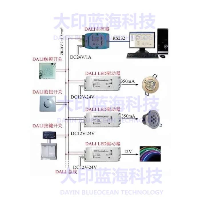 DALI数字式可寻址灯光接口(Digital Addressahle Lighting Interface)镇流器,是当前 新型的可调光荧光灯镇流器,1999年Philips,ORSAM,Tridonic等公司共同制订了DALI的工业标准,纳入IEC929,保证不同的制造厂生产的DALI设备能全部兼容。