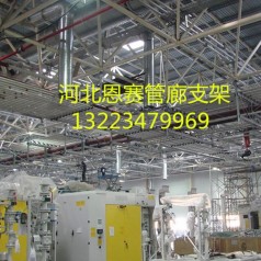 通常意义的管廊支架是由预埋槽道、高强度T型连接螺栓、C型槽钢、悬臂槽钢、槽钢配件、抗震构件、抗震管卡和电缆卡具等通过螺栓机械连接方式来组成;其预埋槽道型材为胚锻热轧的,再加上支架型材断面形状又从几何学上进行了优化,这就特别适用于T型螺栓的动态负荷和高夹紧力。