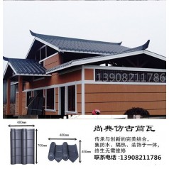详细信息 高分子装饰瓦是以高耐候性航空高分子材料为基料,以无碱高强纤维为增强骨料,经现代高温模压免烧工艺生产的 种新型高端屋面瓦,产品传承经典的青筒瓦和小青瓦风格,古朴典雅大气而厚重,配套产品齐备,与粘土烧结瓦相比具有瓦型经典美观、轻质高强、安装简便快捷、质感细腻厚重、色彩丰富持久、终身无需维修、综合性价比高等多种独特的品质优势,是粘土烧结瓦的更新换代产品,是各类高中端永久性建筑,特别是新型装配式建筑理想的装饰屋面瓦。市面上传统的烧结瓦采用天然气或炭用火烧制而成,经过雨水和天气的变化容易脱落,漏水,遇刮大风易吹翻伤人,价格便宜,3年左右年就要开始维修翻新。每平方用瓦量含沟瓦盖瓦多至60-70张,安装用水泥砂浆粘贴体积重达80公斤,安装人工费时,费工钱