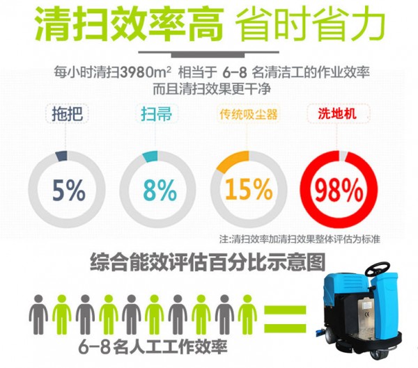 洗地机是高科技、高效率清洗设备, 适合的清洁作业区:水泥、花岗岩、大理石、陶瓷、石板等硬质地面和弱性地板。简单易操作;维护成本低;高效率、更好清洁效果;节省耗材、人工成本、时间(比人工速度快6-40倍);清洁大面积场所、创造利润、节省费用。