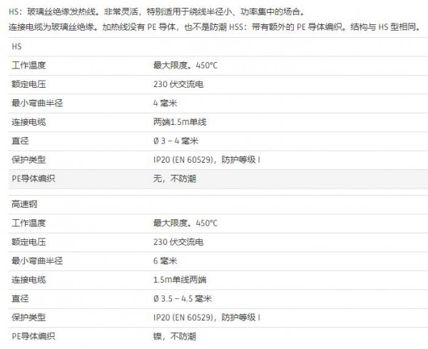 hillesheim 用于紧密缠绕半径的加热线HS系列