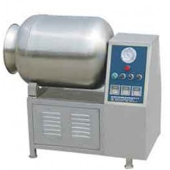 真空滚揉机是在真空状态下,利用物理冲击的原理,让肉在滚筒内上下翻动,相互撞击、摔打,达到按摩、腌渍作用,使肉均匀的吸收腌渍,提高肉的结着力及产品的弹性,通过滚揉、按摩能使肉体蛋白质分解成水溶性蛋白,易被人体吸收,同时能使添加料(淀粉等)与肉体蛋白质互为融合以达到肉质变嫩,口感好,出口率高。本机具有肺呼吸功能,让产品在滚筒内膨胀、缩小了往复运动,改善了肉组织的结构,提高了切面效果。