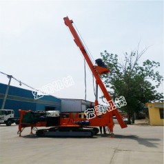 履带式长螺旋打桩机主要用于楼房地基的打桩,可以根据工程要求定制钻杆尺寸。使用液压行走钢制履带,适应于大部分复杂地形。